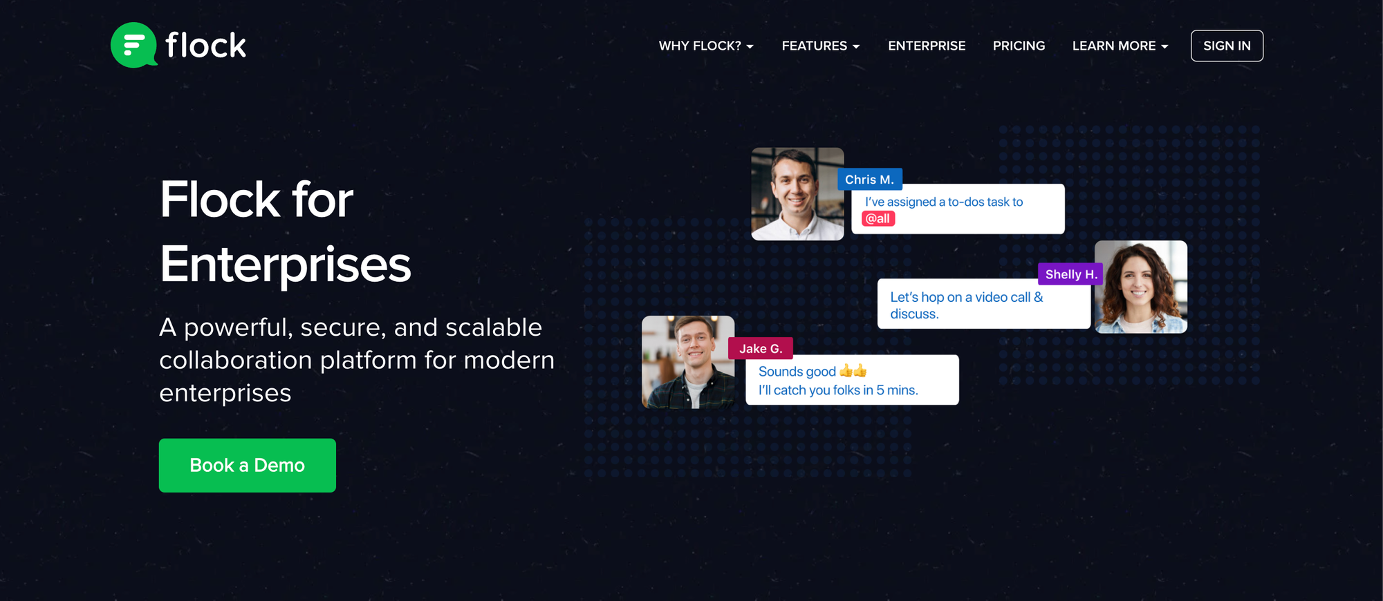 - Speak directly to IT and leadership pain points. Enterprise decision-makers need more than just a list of features—they need proof that Flock can handle compliance, governance, and data protection at scale.
