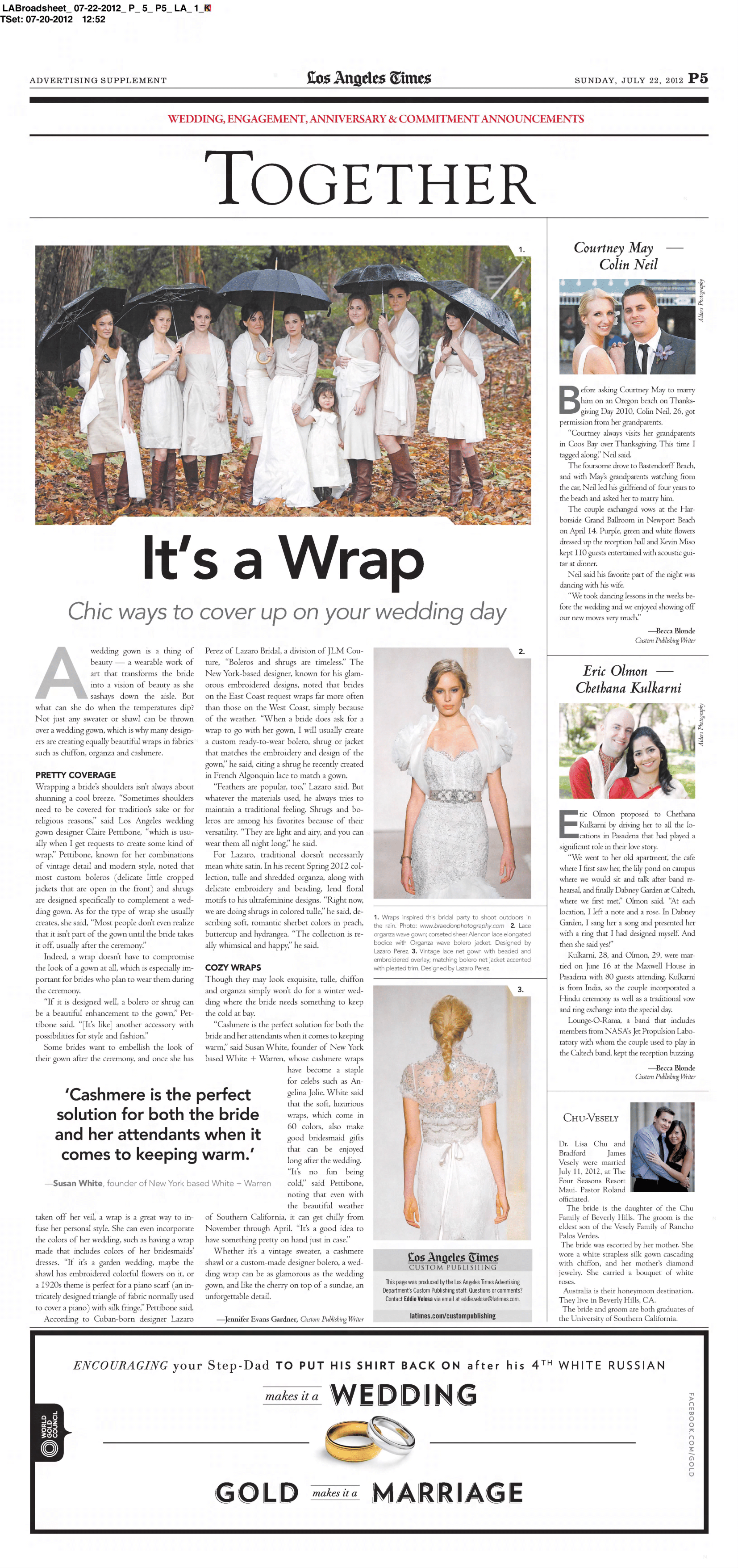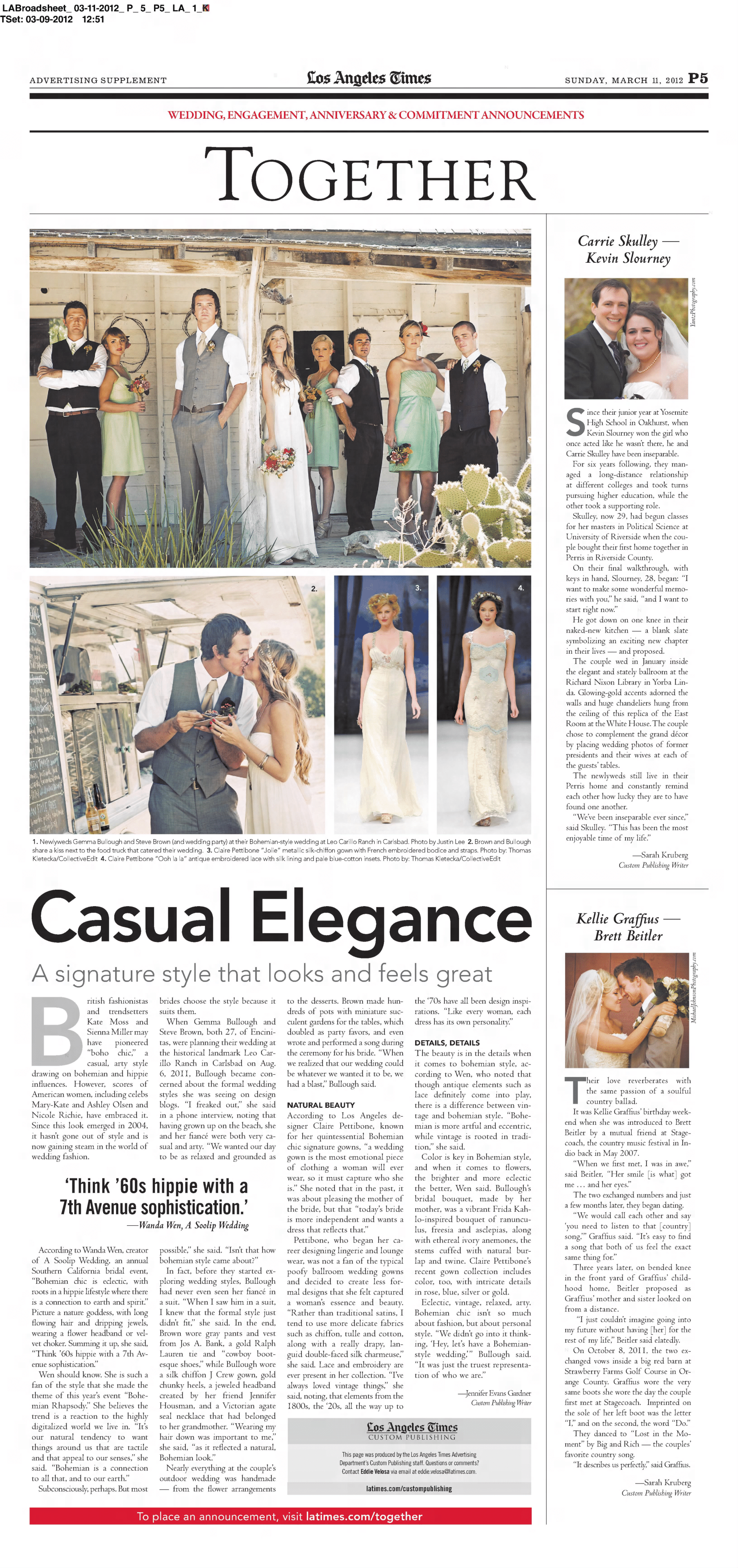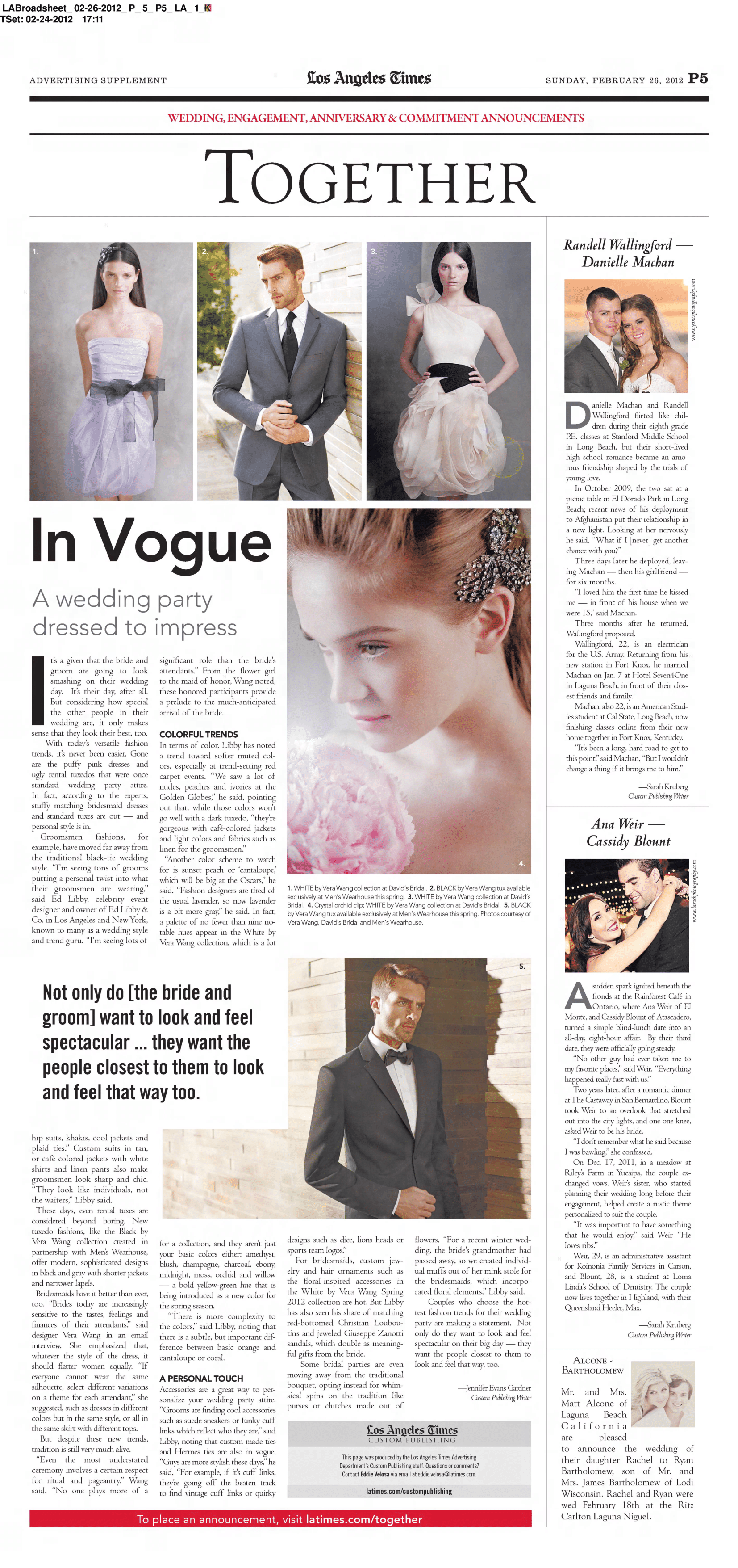 Editor for special wedding feature.
